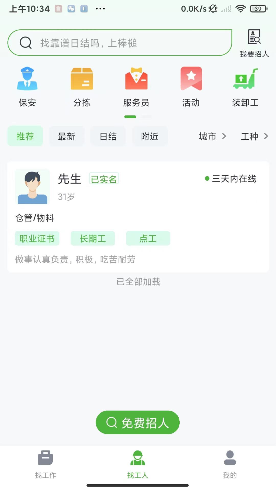 3、每天实时更新数十万条包含保安/临勤、分拣/包装、扫码/贴标、搬运/装卸。