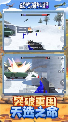 战地模拟绝地战场手游是一个十分刺激有趣的枪战射击手游,各种不同的模式任由游戏者选择,竞技模式可以使游戏者畅快比拼枪法,激烈枪战;闯关突围模式可以让那个游戏者切身体验到战争的宏伟场面;生化模式更是丰富有趣,在手游里游戏者需要合理配置武器,在僵尸围堵中突出重围。激烈的快节奏战斗,购买并升级枪支,打败您的敌人!