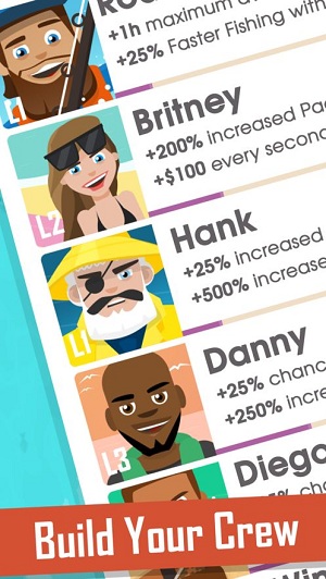 每个船长都需要一个好船员!你的船员就是你的家人。雇佣并提升船员,以帮助扩大你的捕鱼帝国。每个船员都有自己独特的技能来帮助你捕鱼。