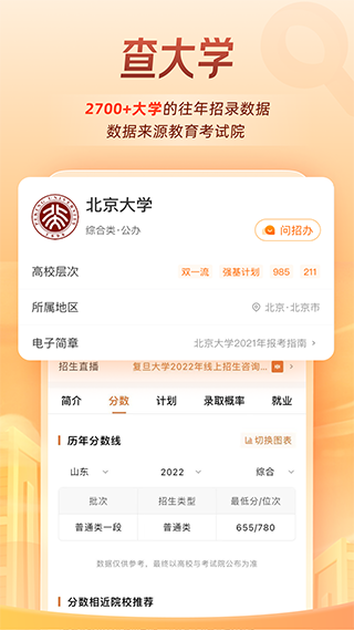 每日消息推送高考资讯及其每一个院校热门行业的录用情况,及其愿填写等內容