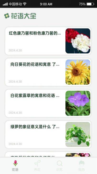 2、提供丰富的花语内容,包括各种花卉的象征意义、解读以及花语的用途,满足用户对不同花卉的了解需求。