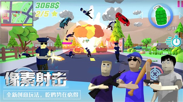 这是最新的像素射击争霸手游,在游戏中游戏者有许多不同的战斗方法;