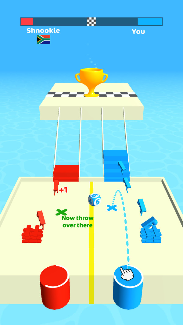 骰子搭个桥游戏是一款十分有趣的搭桥竞技小游戏。采用1V1对决的方式进行游戏,可以选择本地和联机两种模式,玩家通过投掷骰子来召唤橡胶小人,橡胶小人越多搬运方块的速度就越快,抵达终点摘得冠军头衔的几率就越高,操作没有什么难点,喜欢的话就赶紧下载游戏吧。