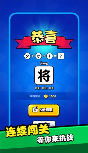 魔法汉字是一款闯关挑战的游戏,魔法汉字的游戏画风全部都是卡通的,玩家在游戏开始的时候解锁不同的关卡并且不断的提高玩家的技巧。在这里面拼字还是蛮简单的,各个类型的题目都有,数千种不同的谜题将会让玩家的大脑得到丰富。还能有效地锻炼开发自己的大脑,挑战结束之后获得的奖励也就越高,在游戏之中拥有很多连续答题的玩法可以自由的进行,获得丰厚的通关奖励,让玩家的游戏积极性不断的提高起来。