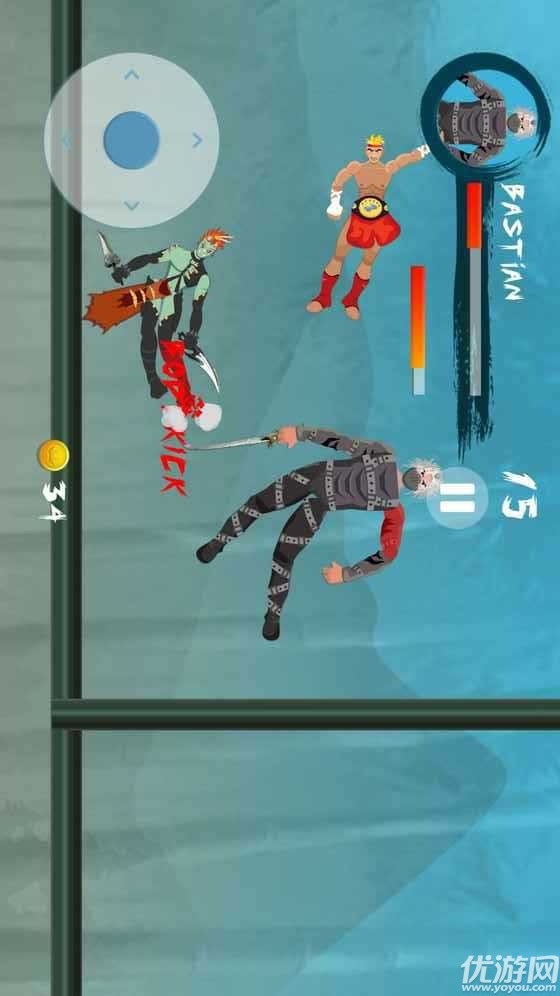 3手游中游戏者控制的人物会像气球一样飘起来,我们通过控制方向来使用手中的武器去击打对方;