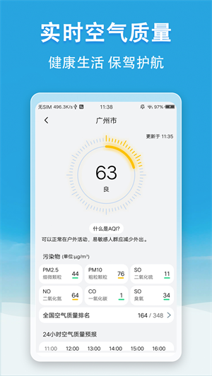 生活指数:提供生活指数查询,空气质量、紫外线指数等,更好地安排生活和工作,便捷出行;