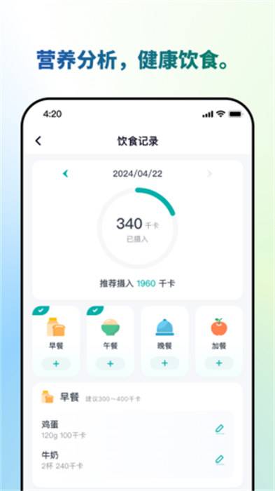 4、以科学的饮食结构为指导,帮助用户制定合理的饮食计划,并提供食材营养查询、饮食记录等功能。