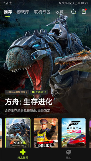1、打开3A云游,进入应用主界面,包括推荐、游戏库、联机专区和收藏频道,在当前推荐频道可看到系统推荐的不同游戏,
