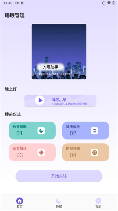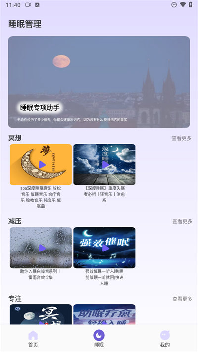 1、首先打开下载好的App,进入软件后在首页位置看到多个入眠步骤,点击不同的模式去体验;