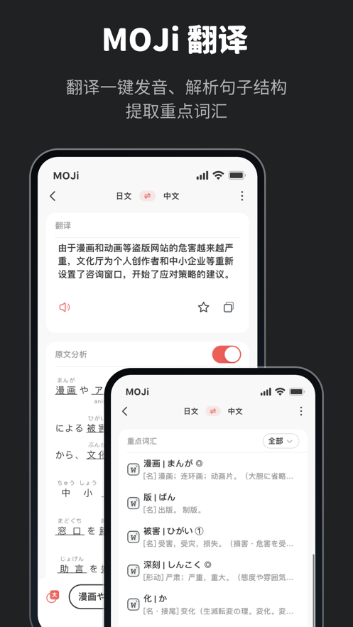 moji辞书会员这是一款质量很高,很好用的翻译软件,使用者可以在该软件上学习词语的内容,词语的收录了很多的经验,词语的查询的功能很强大,具有纯正的声音的播放的功能,帮助使用者进行记忆,能让使用者在学习时,对英语字头及字头有很大的兴趣。