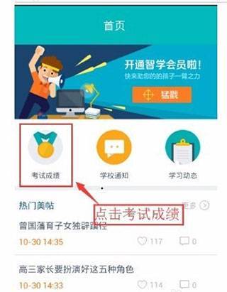 1、下载后打开进入app,点击考试成绩;