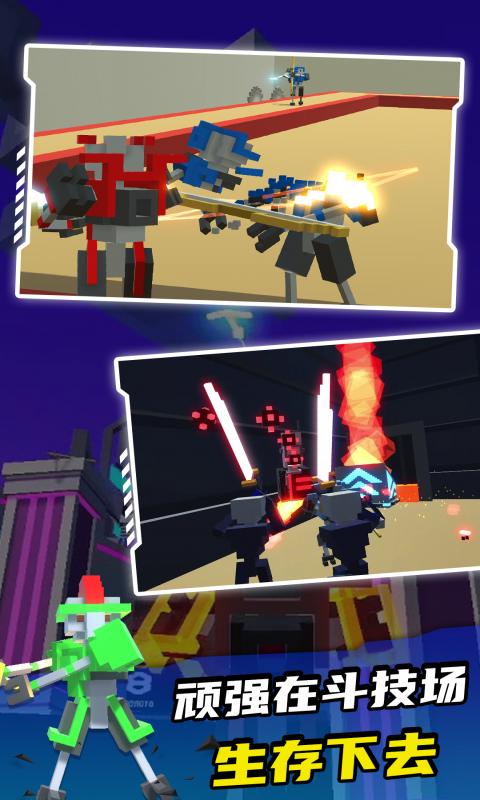 机器人角斗场官方为游戏者带来机器人主题的3D动作手游,加入了多种远程和近战武器,控制刀剑的挥砍方向和距离,与前来的机器人展开对决,战斗的难度将会逐渐提升,在竞技场中展现你的最佳实力,获得最后的冠军吧!