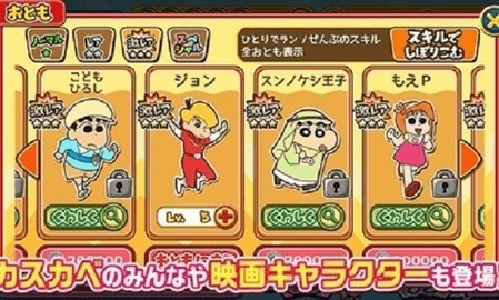 还可以选择其他蜡笔小新里的角色来进行爽快的跑酷哦,超轻松的跑酷冒险正等待着你