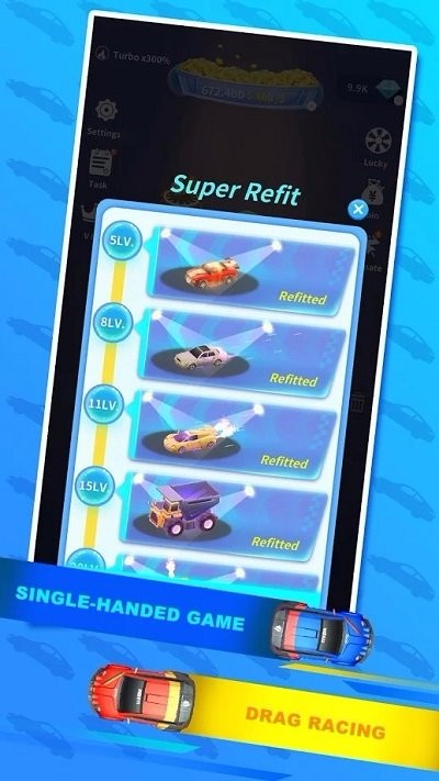 完成不同级别的挑战,赢取丰厚奖励,解锁更多高性能赛车和道具。
