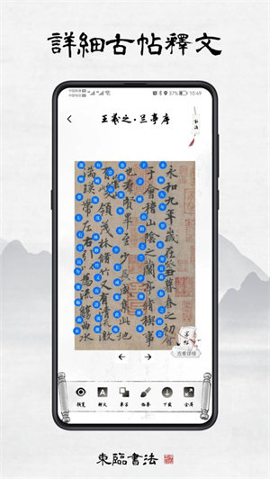 1,高清字帖查看:提供王羲之、欧阳询等古代著名书法家的真迹作品。