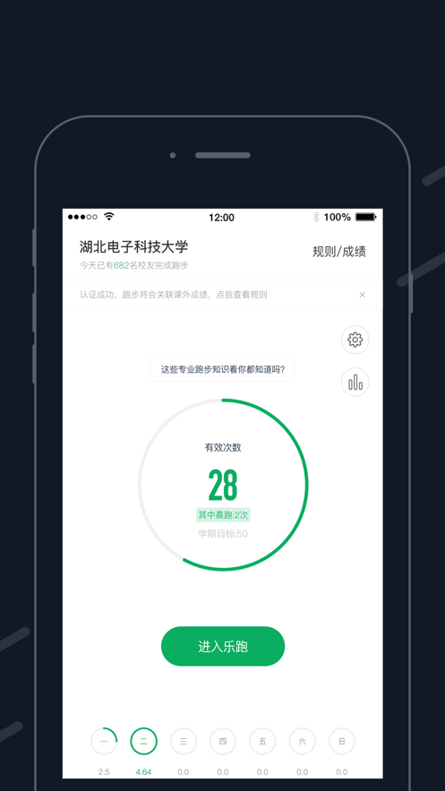 当学生跑步时,软件中的系统会自动打卡,内部有语音和弹出式震动提醒。