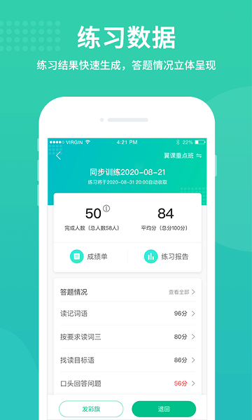 4)随堂练习可以一键收发,练习结果也能智能分析,极大地激发了学生的学习兴趣,开启了课堂教学的新变革。