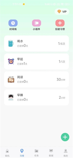 2、点击习惯,用户可自定义创建习惯,设置次数,即可开启自己的自律生活;