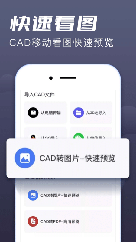 cad作为一款让你看cad图片的工具,可以之际的进行转换,以图片的方式来进行你的浏览,还能进行一些编辑,满足于不同的用户们,出门在外看图纸也是方便,让你轻松的进行选择,还支持很多方式的导入,一起来这里看看吧!