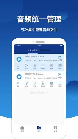 音频提取大师对提取的音频文件和裁剪出的音频文件进行分类并进行统一管理,让音频文件不再杂乱