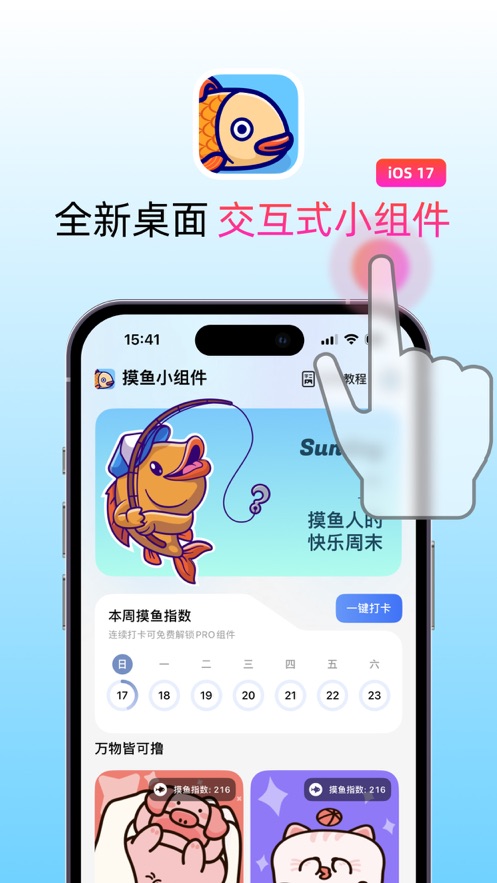摸鱼小组件APP以简单的方式帮助用户在小组件的运行环境下,使用桌面就可以便捷的感受到趣味摸鱼的全新组件内容,你可以以交互的简单方式享受到全新的放松和娱乐内容,在工作中抽空使用组件,带给你最轻松的组件内容,多功能的组件等你自定使用。