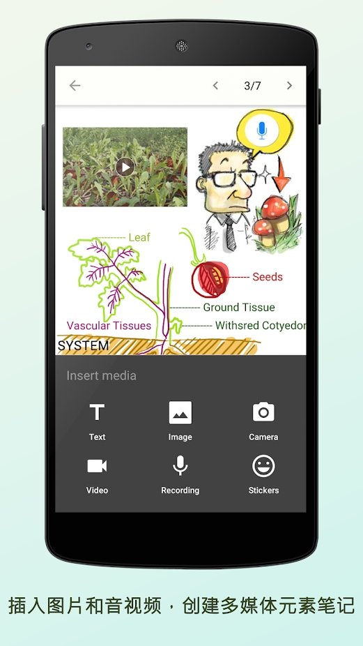 noteledge提供丰富的工具与素材,通过文字输入、手写、绘图、插入图片、建立表格、录像、录音、撷取网页内容等方式在移动设备创作笔记并整理多媒体文件,还可在笔记中根据需要添加丰富的创意图章、封面、底纸,创作独具个人风格的百变多媒体记事簿。