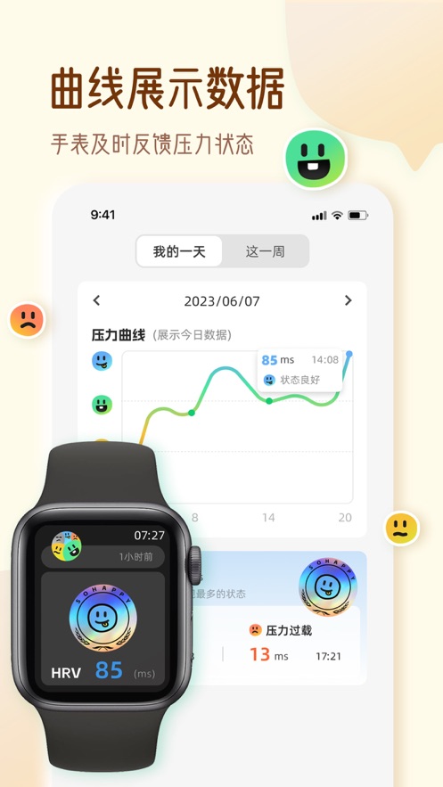 压力测试和监测可以在手表上随时随地进行,方便快捷。