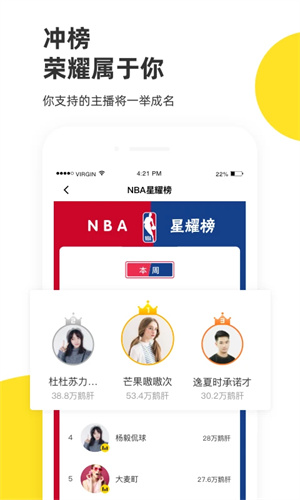 麦迪、杨毅、芒果、小姨妈、美娜、王猛、神姐儿、九哥、糖糖小幂等知名主播解说,更有高颜值女主播陪你一起看球聊天,实时互动零距离!