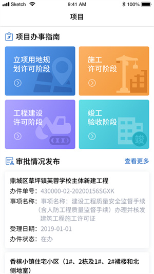 用户可以通过应用提交工程项目审批、建筑许可等申请,实现政务事项的线上办理。