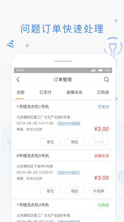 商家通过手机即可对设备进行管理,不管身在何处都能第一时间了解设备的使用情况,极为方便。