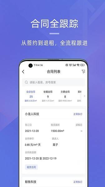 1.实现了对合同从签约到退租整个过程的紧密跟进,确保每一个环节都清晰可见,能及时掌握合同动态。