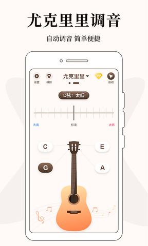 专业调音器是一款好用的在线吉他调音工具,一款能够让用户在这里轻松实现最简单的吉他调音,精准快捷,让用户可以在app上完成调音操作。专业调音器内置了一个尤克里里调音,用户可以在这里开启自动调音,简单便捷,支持多种不同的音弦调音,让用户可以在软件中快速完成智能吉他调音。