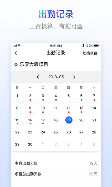 5)帮助用户轻松进行工资核算,使结款过程更加便捷,保障了工友的权益。