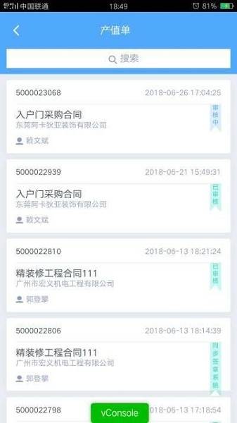 用户可通过点击不同单据类型,查看已办或所属公司合同对应的单据信息,详细了解单据详情及审批进度。