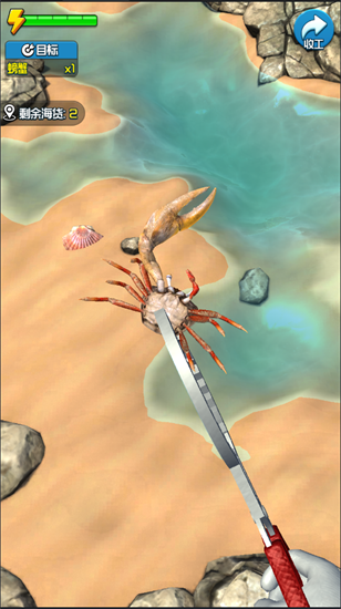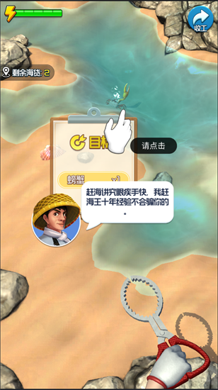 2亲自去探索海边,看看这里都有一些什么海货,并将它们都抓起来。