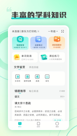 新东方打印机免费,智能打印与丰富学科知识融合!轻松获取安装后注册登录,连接打印机即可使用。它学科资源丰富,打印功能多样,还有错题整理、课后练习等功能。操作简便,打印效果好且高效稳定,节能环保。满足学习工作多样需求,快来体验便捷打印之旅。