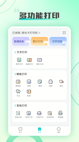 2)无论是文字、图片还是模板,都能轻松应对打印需求,给予用户极大的选择空间。