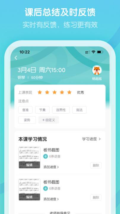 卓越音乐老师端是专为音乐教师打造的专业助手。它拥有丰富教学资源和便捷功能,如简洁界面、课程管理、学生信息管理等。支持真人在线1对1教学,实时反馈课后总结,课程安排清晰直观,适应多种上课形式。能助教师高效教学,提升学生钢琴演奏能力,快来体验。