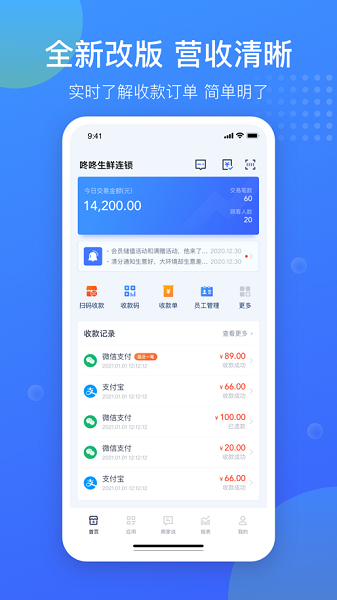 2、以电子记账的方式,让商家对每日营收情况清晰可见,随时随地都能方便查询,实时知晓生意动态。