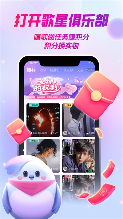 3、紧跟时代脉搏,歌星俱乐部app歌曲库持续焕新,第一时间捕捉最新流行风向,让您的歌单永远走在潮流尖端。