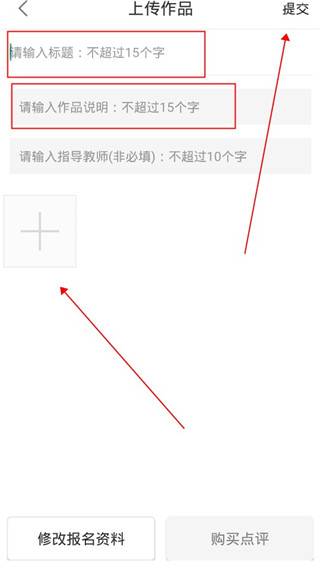 8、输入作品名字以及相关信息,然后点击+号将作品图片附加上,最后点击提交即可