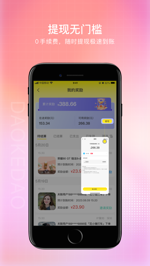 道可到app这是一款领红包券的应用程序,可以让使用者在这个应用中看到资金的内容,并且还可以通过这个程序来实现对资金的查询,这款软件是一款很便捷,很好用的工具,使用者可以看到自己的投资信息,也可以进行资金的管理。