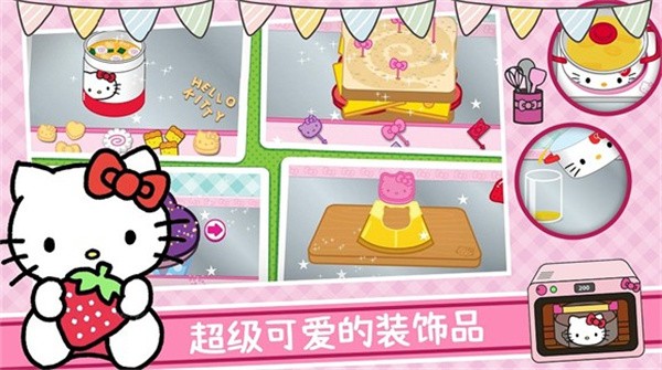可爱的凯蒂猫共同协作制作大餐,根据食谱指引提示完成各方面的食材混合搭配,这会带来相当精彩的挑战。