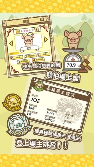 1.会不断提升自己的养猪场等级,可以对一些新的小猪进行解锁饲养。