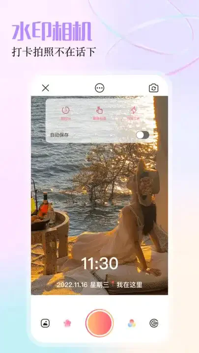 3、水印相机,一键拍摄使用,打卡拍照不在话下哦,轻松拍摄自己喜欢的图片。