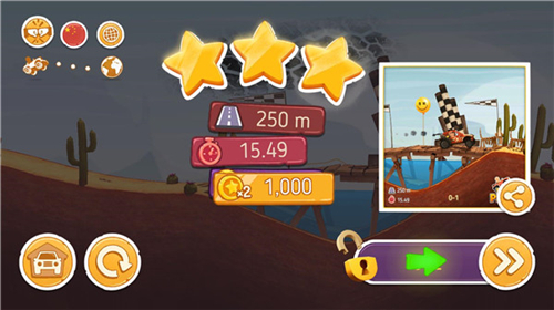 游戏者可以选择多部车辆,并且有多条道路可供游戏者挑战,获得的奖励也将会以不同的难度进行匹配。