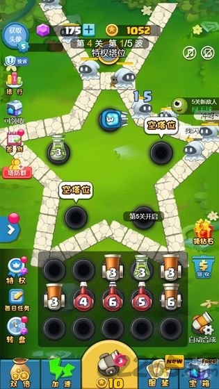 3炮台升级,威力无边:通过合成和进阶,可大幅度提升炮塔的威力。