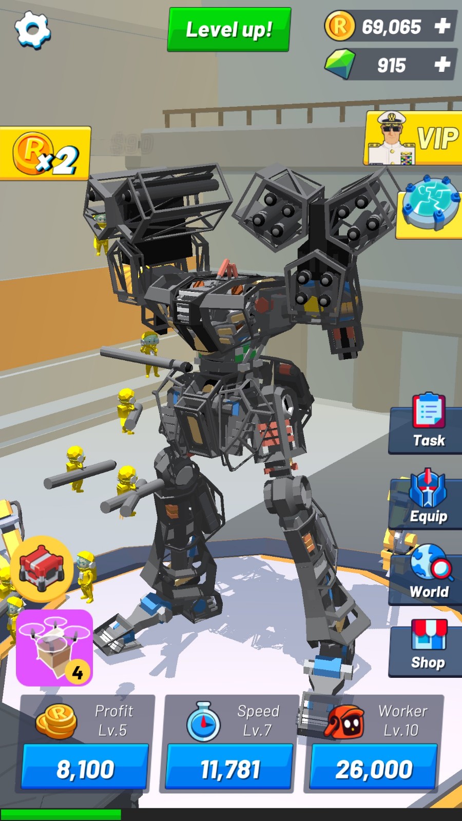 2、而在建造机甲的过程之中,你会使用大量的金币,道具,还有不同能力的员工,帮助你建造的更快。