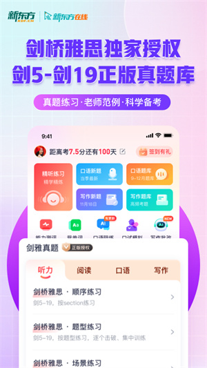 新东方雅思Pro是一款好用的在线英语学习软件,一款能够让每一个学生都能在这里快速学习全网海量的英语课程,里面的英语教材来自剑桥雅思,让学生从小就能开始培养剑桥英语,剑5-剑19真题都能在线考一考。新东方雅思Pro永久会员有着好用的听力阅读真题练习功能,学生可以在这里一站式考验听力阅读,海量的真题听力考试,让用户可以在这里快速模拟测试,学习听力更简单。