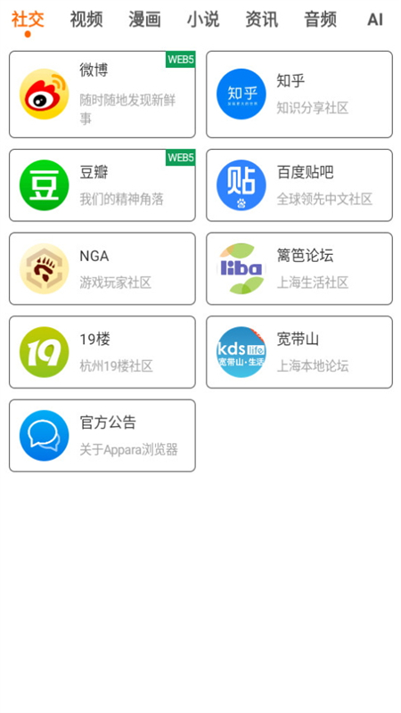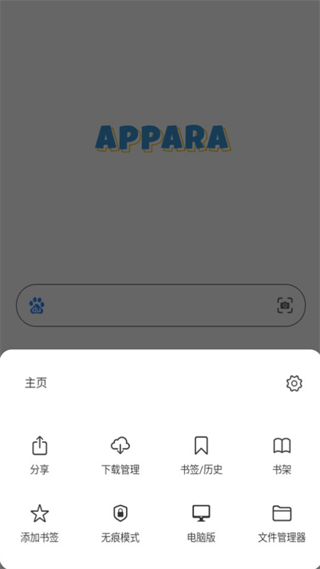 1、下载安装并打开Appara浏览器app,点击下方中间四个格子的标志